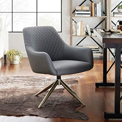 Buy Volans Modern Mid Century Swivel Faux Leather Home Office Chair No Wheels With Arms For Small Space Living Room Bedroom Desk Gray Online In Indonesia B08xqjt4vw