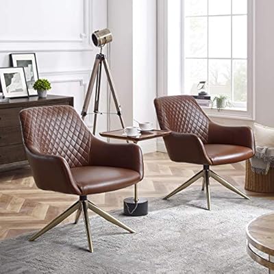 Buy Volans Modern Mid Century Swivel Faux Leather Home Office Chair No Wheels With Arms For Small Space Living Room Bedroom Desk Set Of 2 Cognac Online In Turkey B08xqnbrys